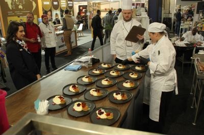 The eight competing teams were given 150 minutes (two-and-a-half hours) to gather ingredients from the EconoFoods on-site pantry to add to the compulsory products, write up their menus, cook, plate, and serve 15 individual servings of a three-course meal consisting of a warm or cold starter, main course, and dessert.