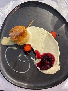 - Dessert: Camembert Mousse, with coconut sponge, berry compote, and smoked vanilla condensed milk drizzle